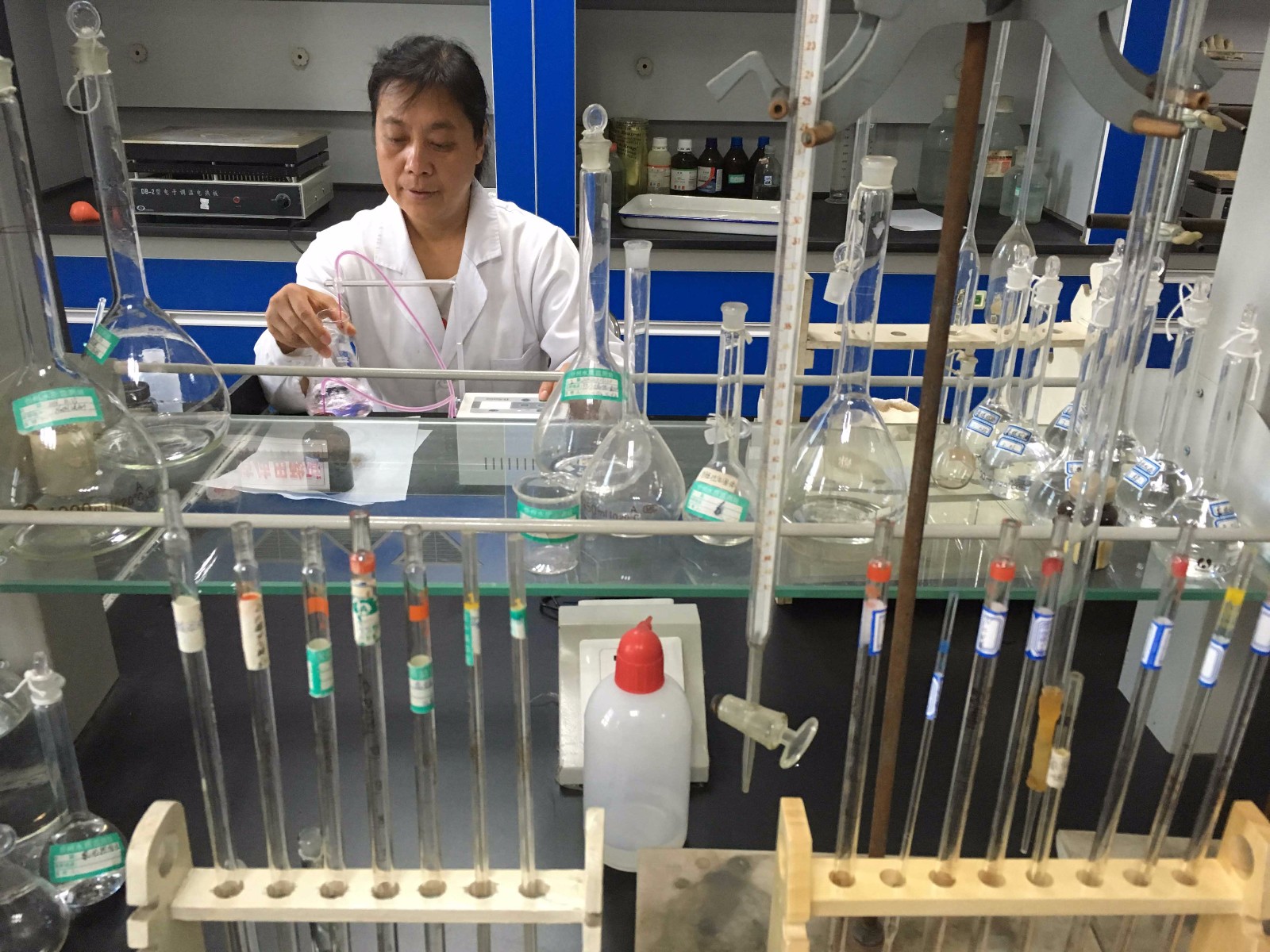 檢測(cè)中心高旭艷進(jìn)行溶解性總固體實(shí)驗(yàn)