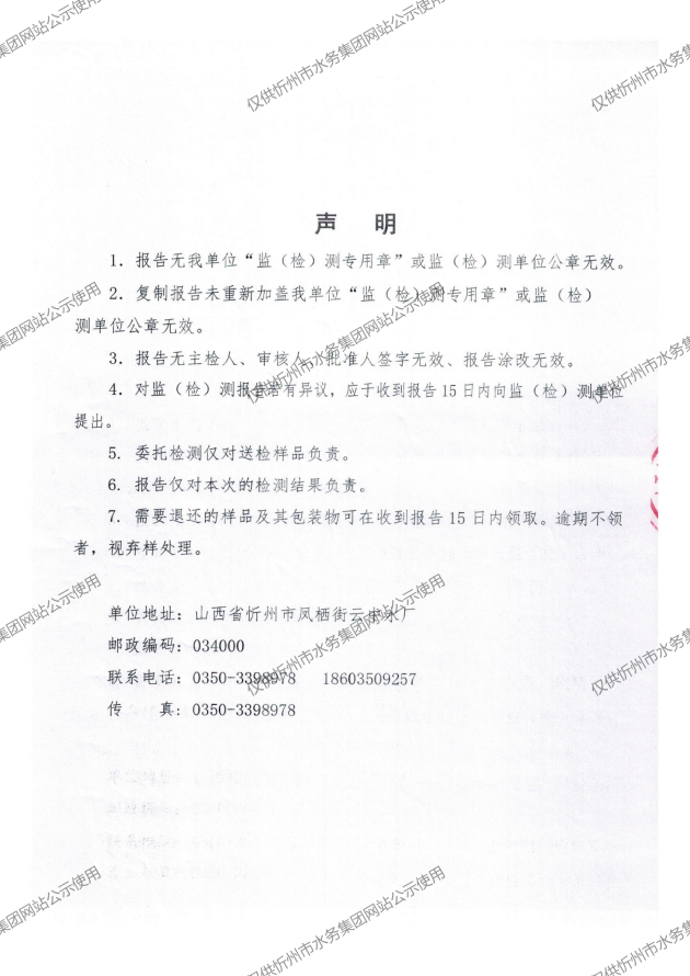 忻州城區(qū)公共供水水源水、出廠水、管網(wǎng)水、管網(wǎng)末梢水2024年11月份水質(zhì)信息公示