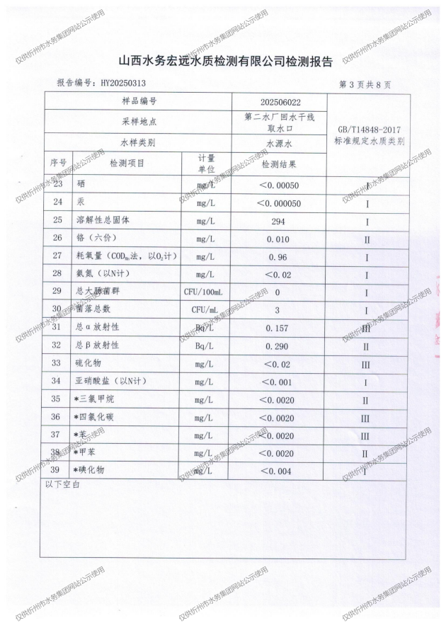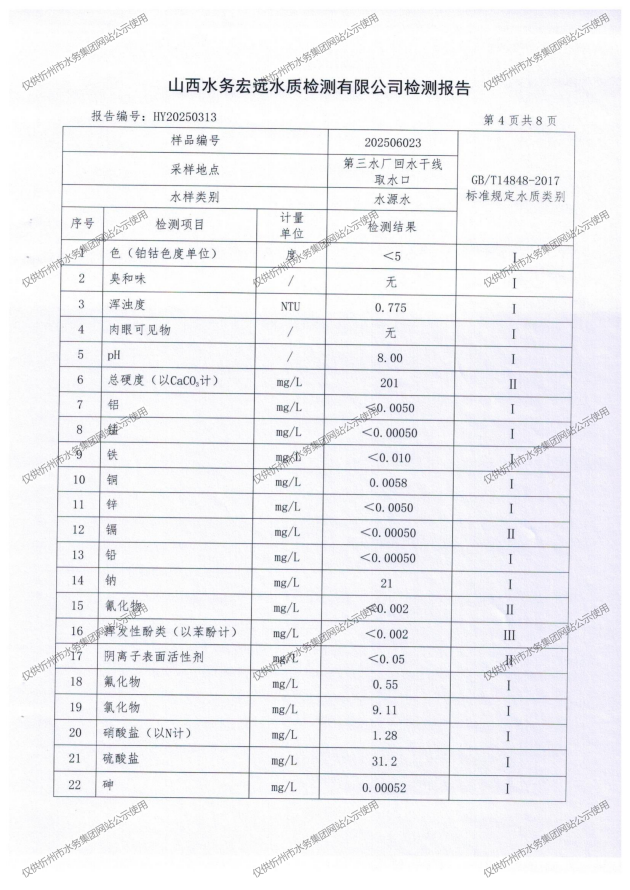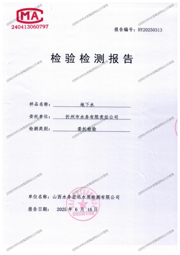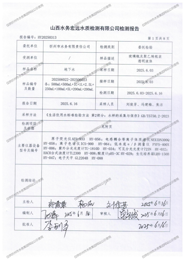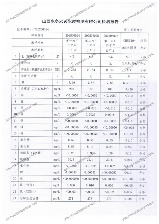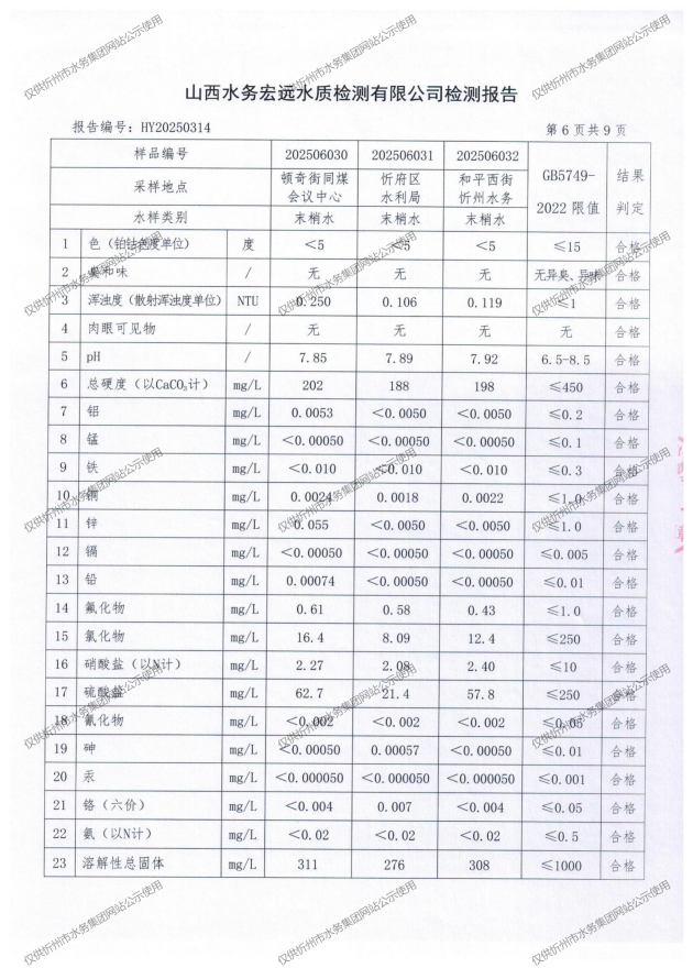 忻州城區(qū)公共供水水源水、出廠水、管網(wǎng)水、管網(wǎng)末梢水2025年6月份水質(zhì)信息公示